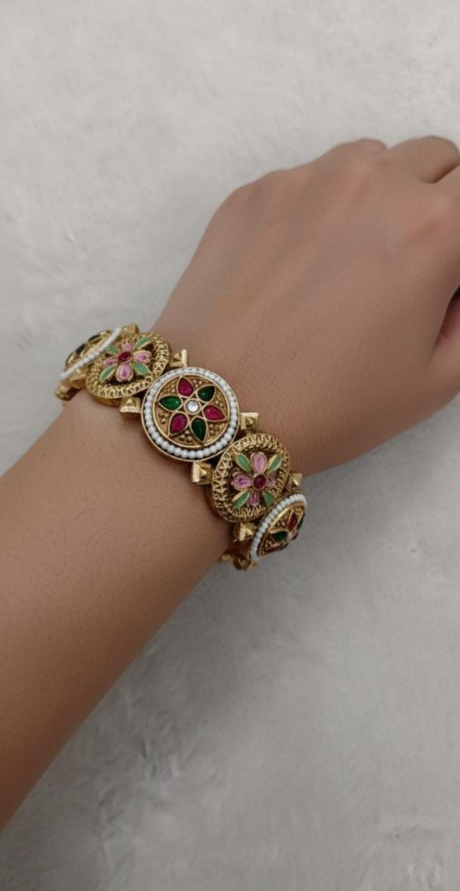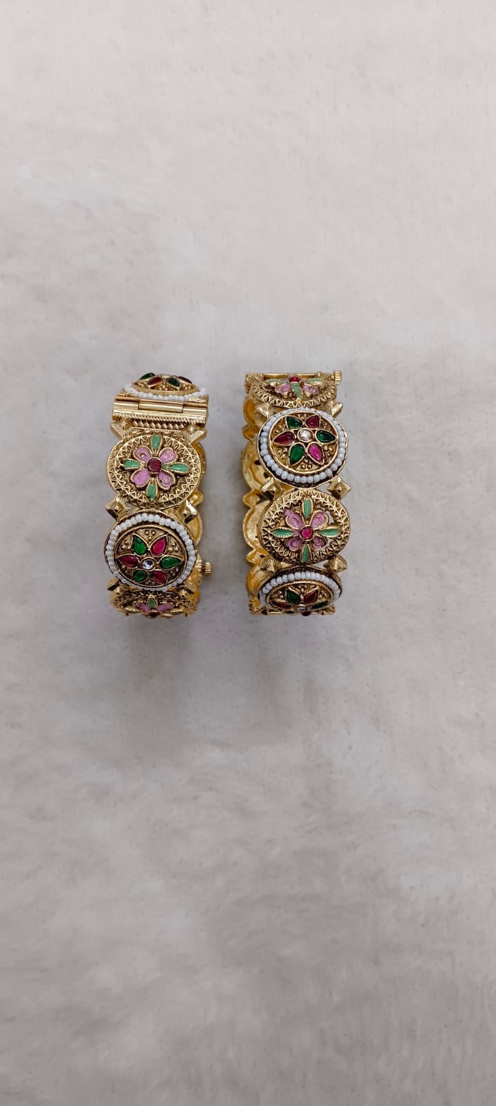 Presenting Aasvi bangle- a simple and understated piece, perfect for layering on any occasion. Crafted with high-quality stones and a refined antique gold finish, elevating any ensemble with sophistication. Whether for festive gatherings or everyday wear, this versatile accessory effortlessly enhances any style with its timeless elegance.