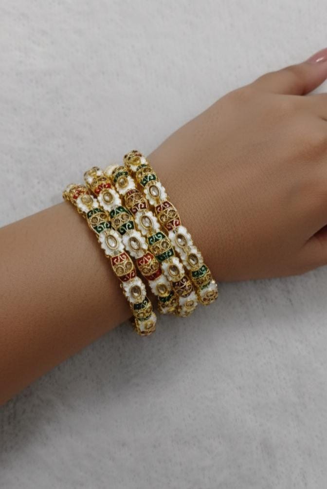 Embrace sophistication with the Basudha bangle, boasting a sleek and minimalist design perfect for stacking on any occasion. Meticulously crafted with high-quality stones and adorned with an antique gold polish, it bestows an air of elegance upon any attire. Versatile enough for parties or special events, this accessory effortlessly enhances any style with its timeless allure.