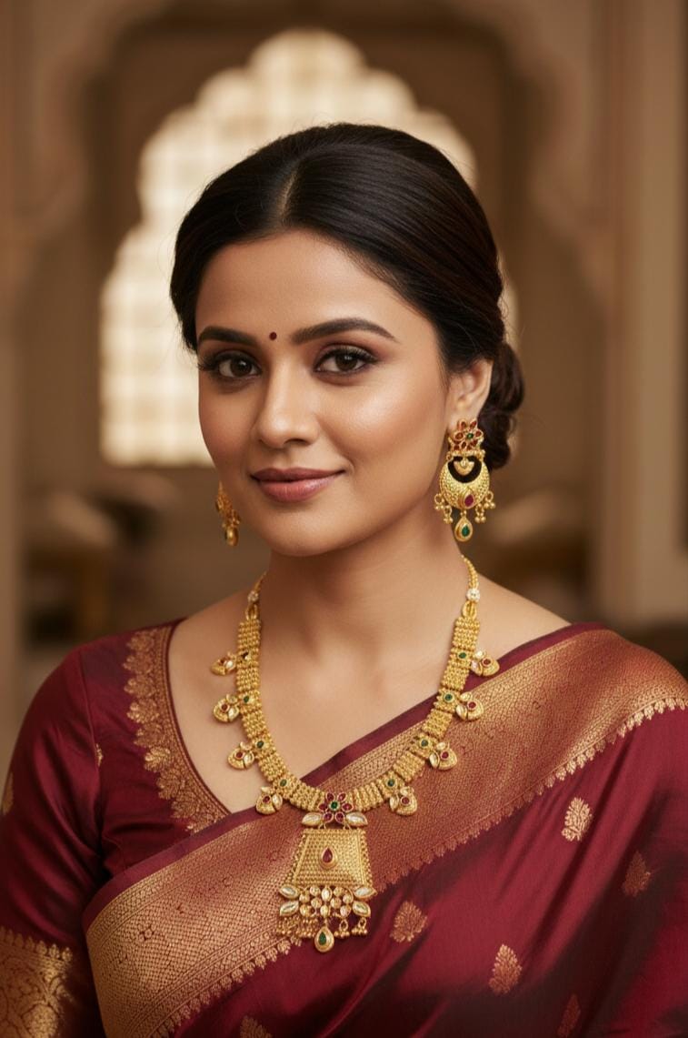 Cira Antique Necklace Set features a bold and beautiful jewelry design that is sure to impress. Crafted with high-quality CZ stones, it's Indian jewelry made for special functions, wedding events and festivals.